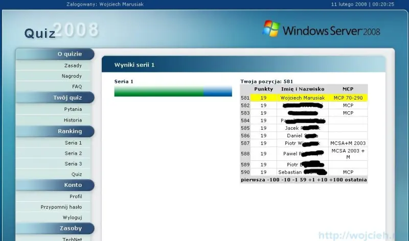 Cieszą mnie przede wszystkim 2 rzeczy, po 1 oryginalny Windows Server 2008 a po 2, że ja marny mały człowieczek z MCP zająłem wyższe miejsca niż uczestnicy z MCSA czy MCSE 🙂